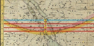1 = nebeski ekvator, ekvinocij, preoljetna i jesenja ravnodnevnica: 0°